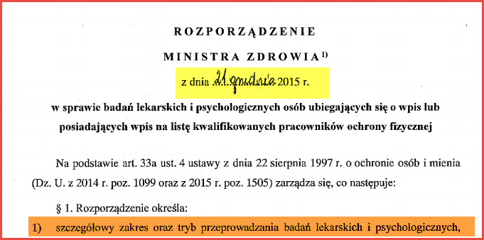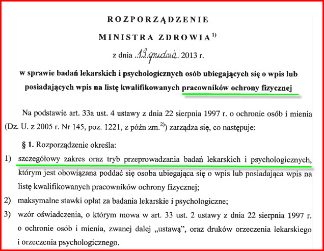 30 lipca 2013 roku pojawiło się Rozporządzenie Ministra Zdrowia, które zastąpiło wcześniejszy akt prawny dotyczący badań licencjonowanych pracowników ochrony. …