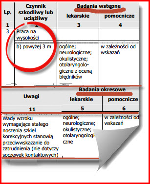 Dostałam skierowanie od zakładowego BHP-owca do zakładowego lekarza na badania ze wzgledu na pracę powyżej 3 metrów.