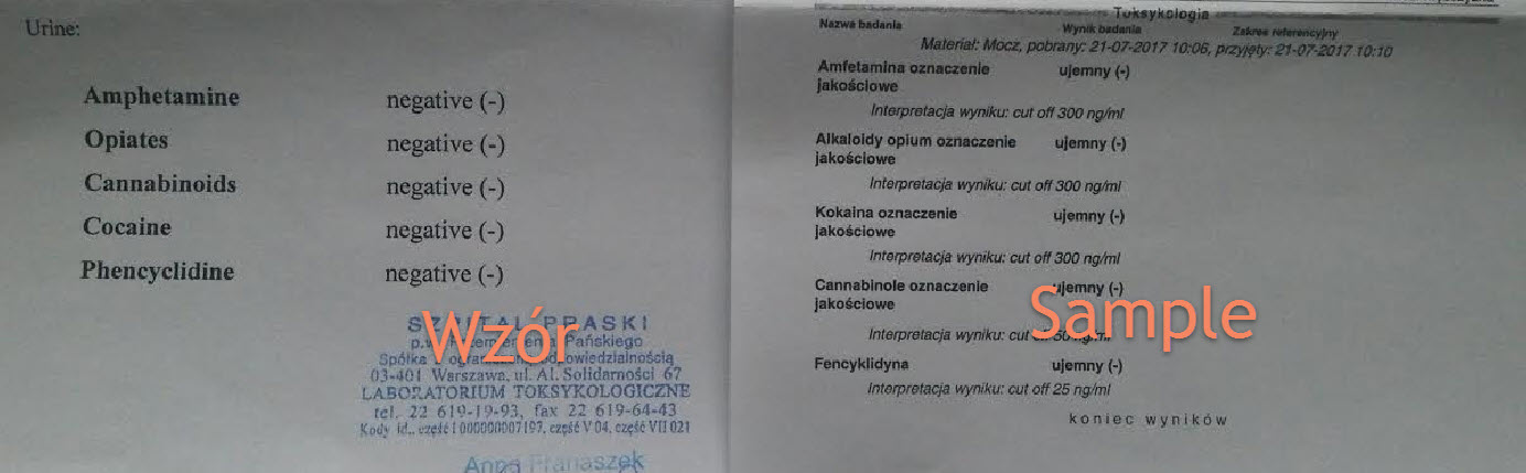Badania na zawartość narkotyków w moczu.