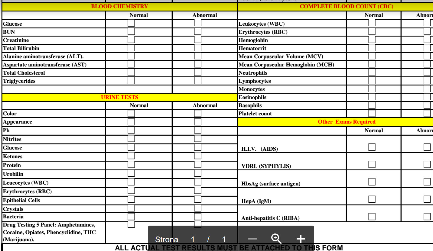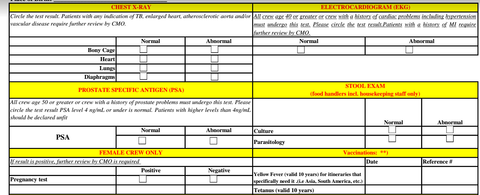 Uwaga: wszystkie wyniki krwi musisz mieć ze sobą do wglądu przez Armatorów