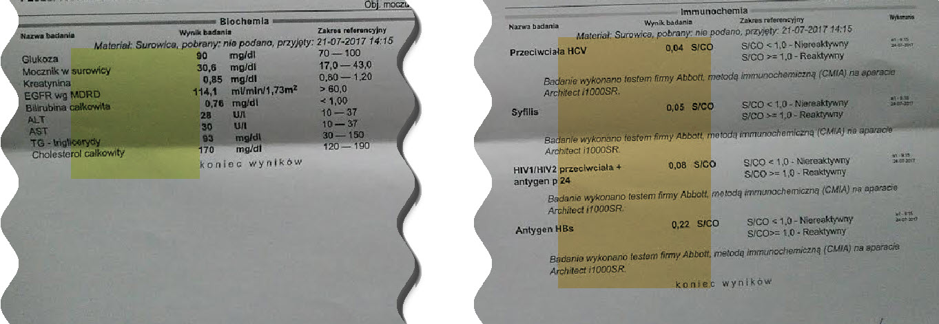 Poniżej przykładowe wyniki krwi