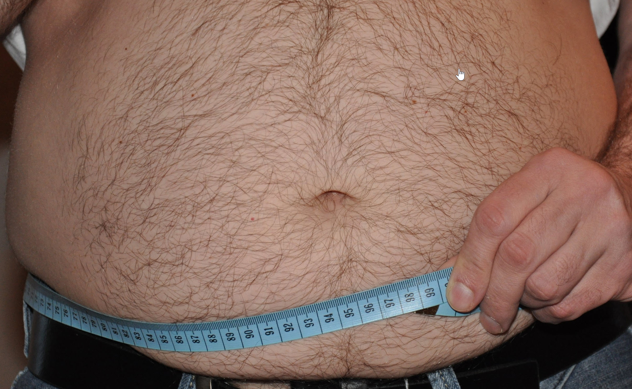 Poniżej pomiar obwodu brzucha w przypadku otyłości brzusznej.