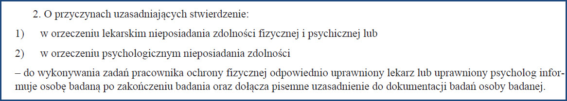 Czyli, jeżeli lekarz uprawniony stwierdzi, że twoje upośledzenie narządu ruchu, na które otrzymałeś stopień niepełnosprawności dyskwalifikuje Cię jako kwalifikowanego pracownika ochrony, to otrzymasz orzeczenie negatywne.
